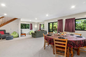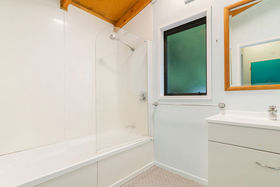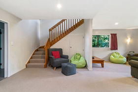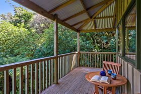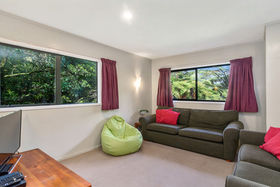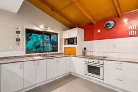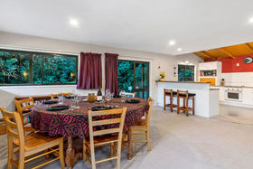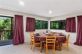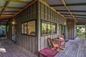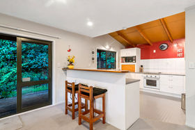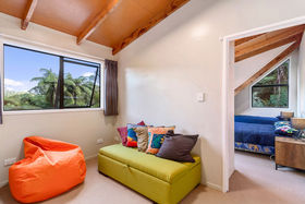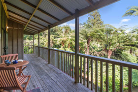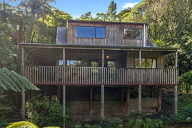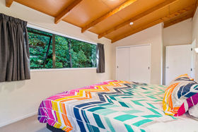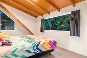 This 2 storey home includes 2 spacious bedrooms on the top floor, including a fold out single bed on the landing. You'll find open plan living on the ground floor with a modern kitchen that has all the essentials for meals at home. Take your morning coffee at the breakfast bar or step out onto the large wrap around deck and watch the fantails flit through the punga ferns. In the warmer months, enjoy a glass of wine while watching the sun set