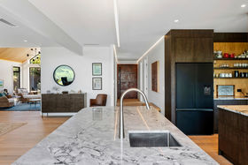 The designer kitchen and scullery are beautifully appointed, perfectly laid out for both everyday living and entertaining, and equipped with all the features expected of a gourmet space - all while enjoying sweeping lake views.
