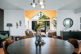 The main living pavilion is exceptional - a grand yet welcoming space incorporating a central dining area, generous lounge, and an intimate nook overlooking the resort-style inground swimming pool and spa. This zone evokes the atmosphere of a private retreat - relaxed, luxurious and effortlessly connected to its surroundings.